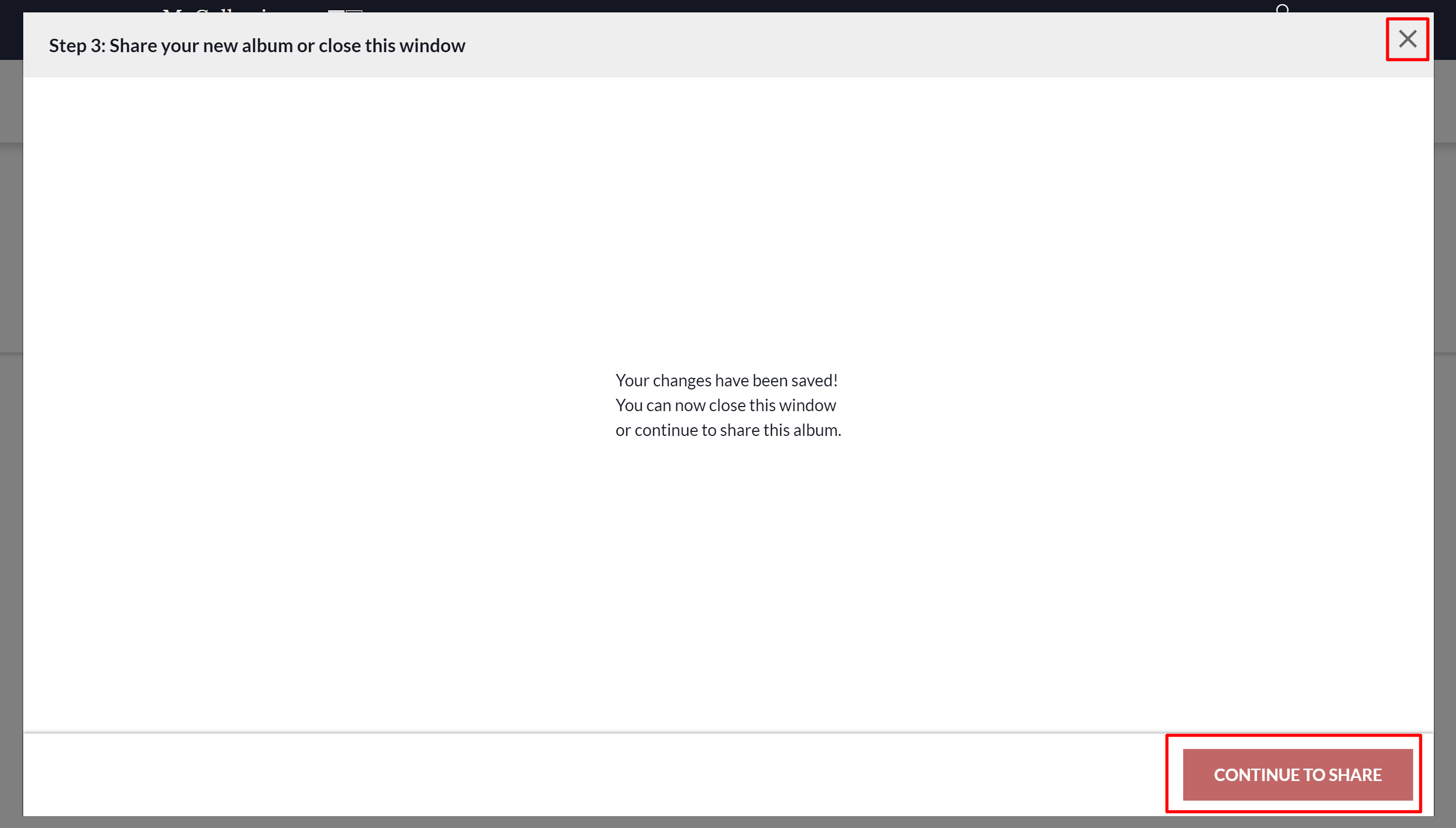 5. Continue to Share or just close the window by clicking the "X" on the upper right.