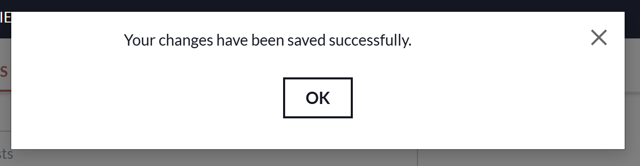 After saving the changes, a pop-up notification will be displayed to confirm that the modifications have been successfully applied. You may then close this notification and either navigate away or proceed with further modifications.